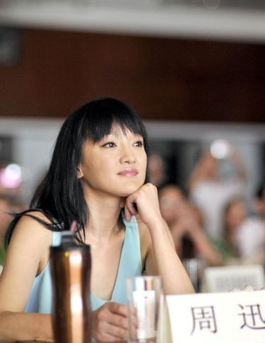 周迅,如此可爱又古灵精怪,即使自己从未掩饰年龄,也没人会去想周迅早已超过30了。周迅去年8月2日现身杭州宣传笔记本电脑。身穿一件蓝色连衣裙的周迅看起来十分清爽,留起了齐刘海的她更显得十分年轻,似乎像是一名中学生。只不过低胸的连衣裙显得她胸前平平,自曝缺点。